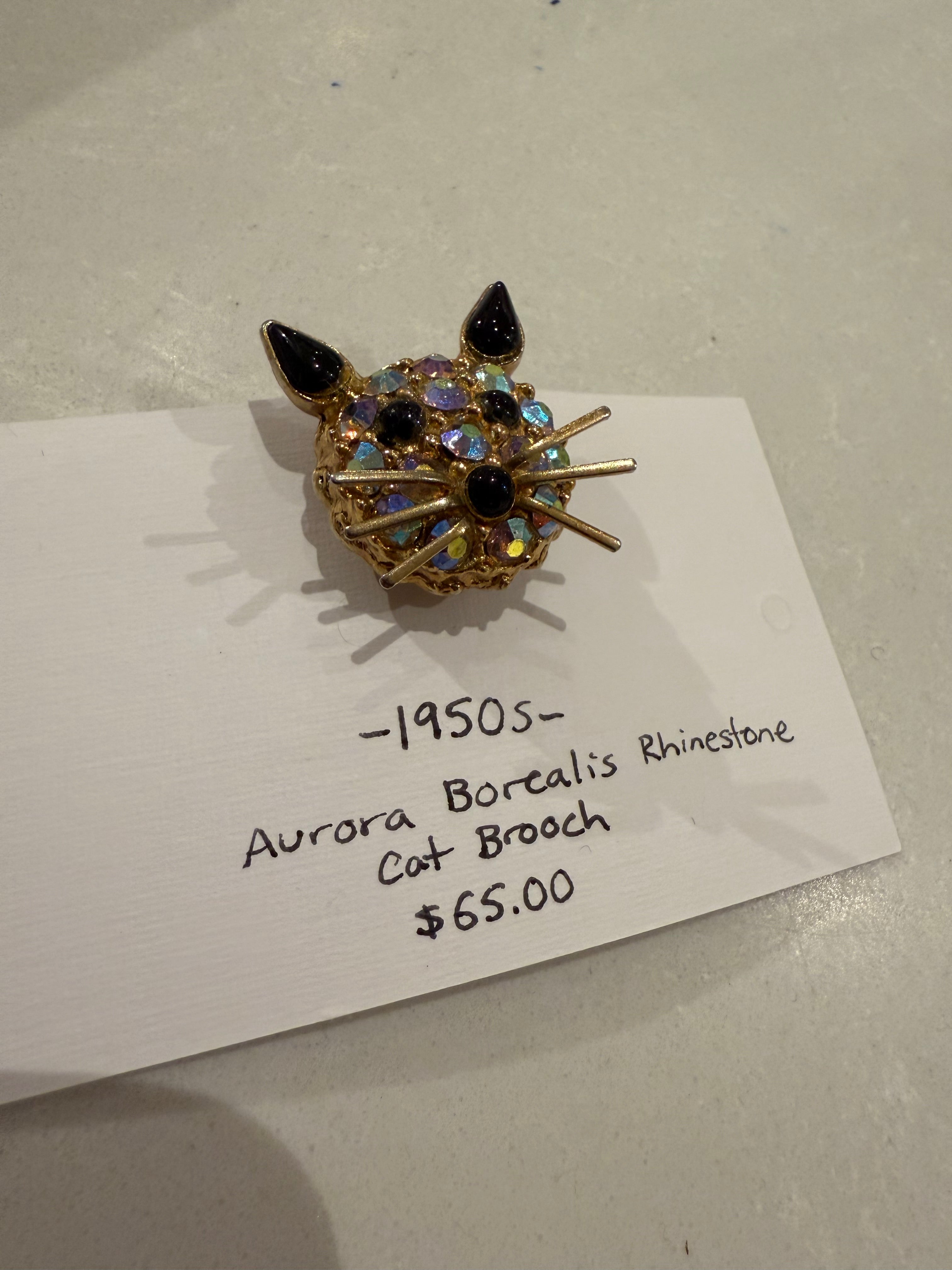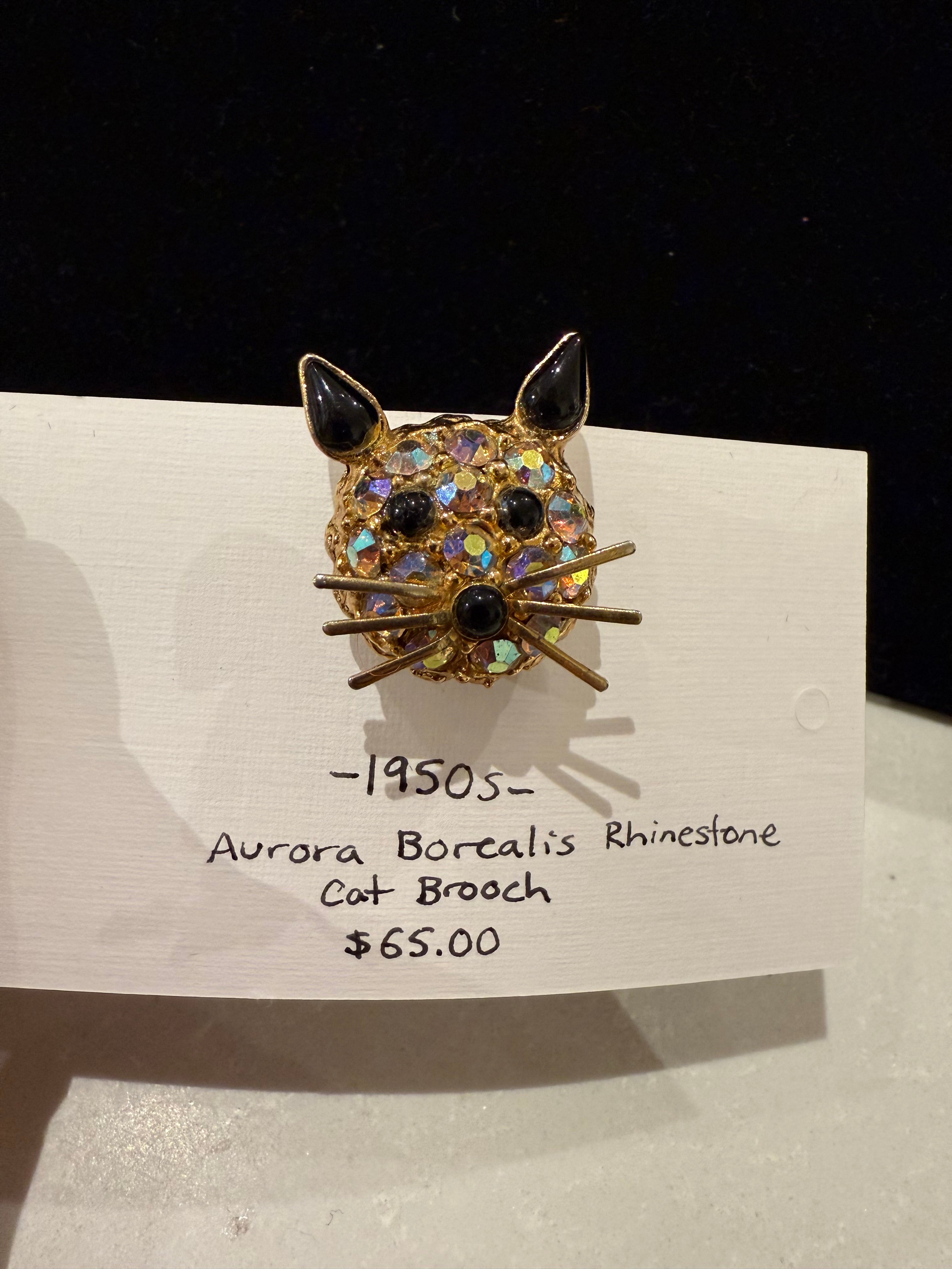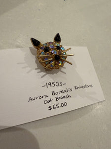 1950s Aurora Borealis Rhinestone Cat Brooch