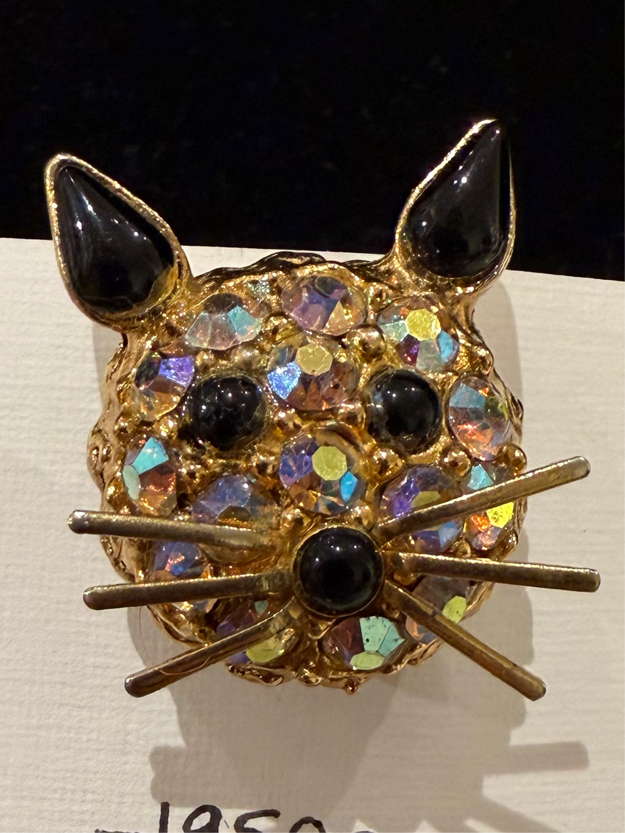 Sparkly and fabulous 1950s aurora borealis rhinestone cat brooch